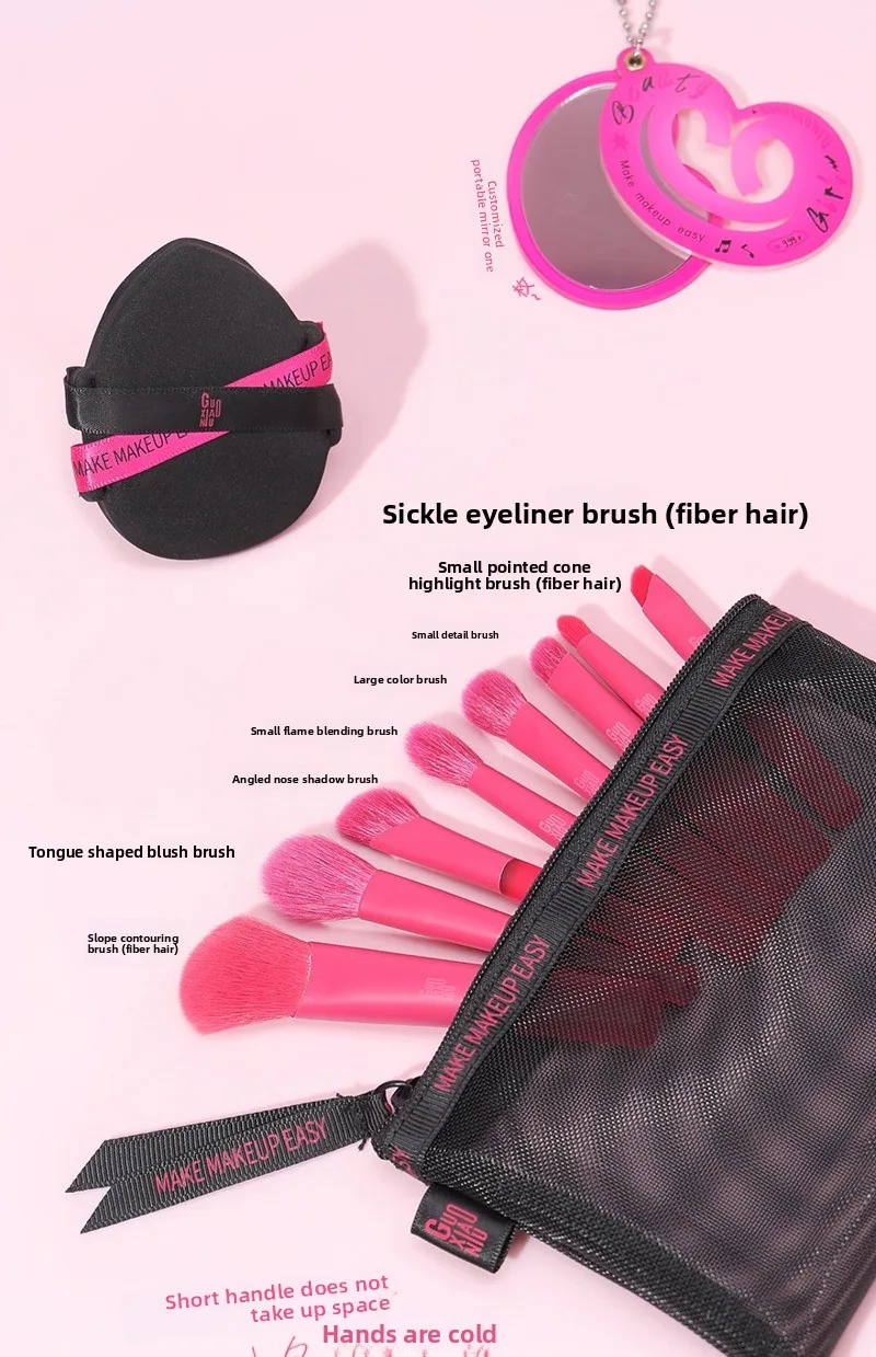 SPECIFICATIONSBrand Name: guoxiaoniuBrush Material: Goat Hair,Wool FiberHandle Material: MetalHigh-concerned chemical: NoneItem Type: MAKEUP BRUSHNumber of Pieces: ComboOrigin: Mainland ChinaQuantity: 8PCSUsed With: Blusher,Concealer,Eye Shadow,Foundation,Lip,Powder,Sets & Kits,Eyelashes,Bronzer Brush,Sculpting Brush,Highlighter Brush,Eyebrow Brush Makeup Set - Upgraded Version 💖 Core Configuration: 8-piece brush set (blended with wool and synthetic fibers) + MeiMei powder...